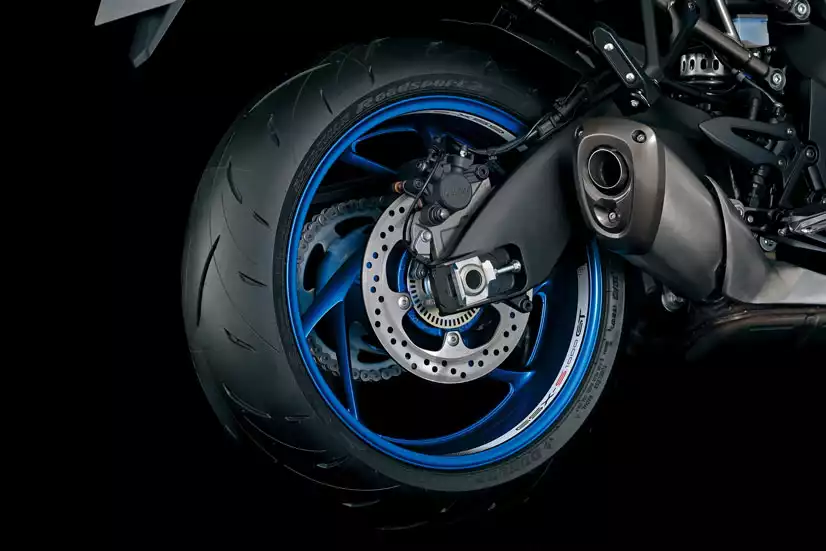 Weißes Felgenbettdekor mit GSX-S1000GT-Logo.
